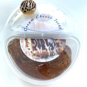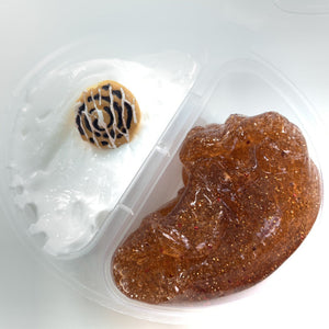 Cinnamon Roll 🧇 Waffle DIY Clay Slime is a deluxe slime experience, it includes a Thick tan base bread slime, Scented just like Cinnamon rolls & comes in an 8 oz container, next you receive a realistic looking Clay Waffle made of tan & white Daiso Clay & scented like cinnamon waffles & cream cheese, last to top it off is a slime duo with 1/2 white cream cheese icing which is a butter slime scented like yummy cream cheese frosting & the other 1/2 is a brown clear slime with glitter scented like Cinnamon drizzle. Top it all off with a adorable realistic-looking Cinnamon Roll Charm, for the full effect!