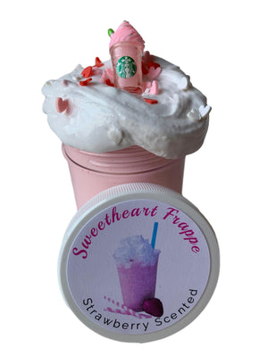 This Bliss Balm Original "Sweetheart Frappe" 🍓Strawberry Frappe Butter Slime Available for a LIMITED TIME ONLY! The bottom is a Pink Butter slime scented like yummy strawberries, the topping is a white creamy butter slime scented like Vanilla frosting, topped with cute clay heart sprinkles and a pink/white Frappe charm! You can mix the colors yourself and it turns into a beautiful light pink color afterward. You can order this 🍓Strawberry Frappe Butter Slime in 2 Oz, 4 Oz, or 8 Oz size, each size will come with a 2 oz Vanilla frosting topping. Get an instant 20% off this item by subscribing to my newsletter here http://eepurl.com/cbTEdj